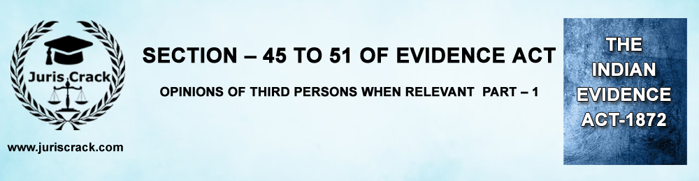 Section – 45 to 51 of Evidence Act – Opinions of Third Persons When Relevant Part-1Juriscrack AdminMay 28, 2022Section – 45 to 51 of Evidence Act OPINIONS OF T ... Read More