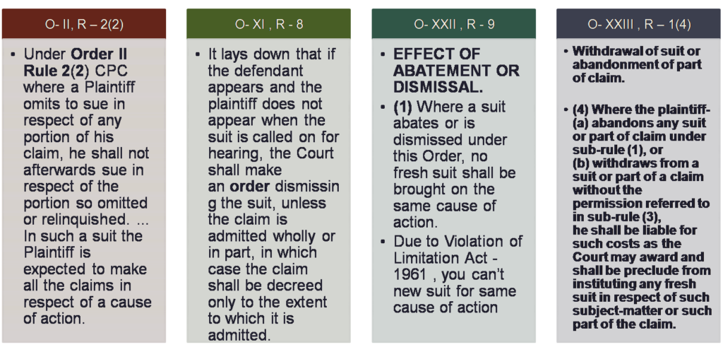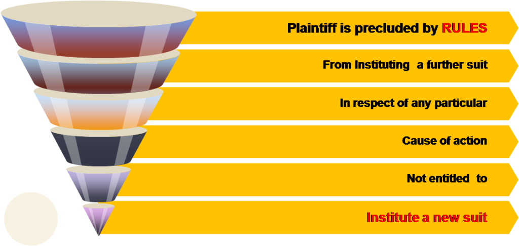 Where a plaintiff is precluded by rules from instituting a further suit in respect of any particular cause of action, he shall not be entitled to institute a suit in respect of such cause of action in any Court to which this Code applies.