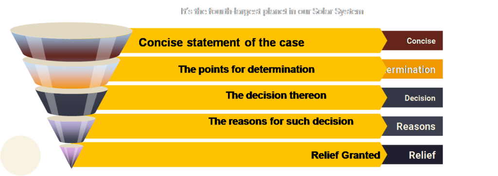 - Issues which are the points for determination;