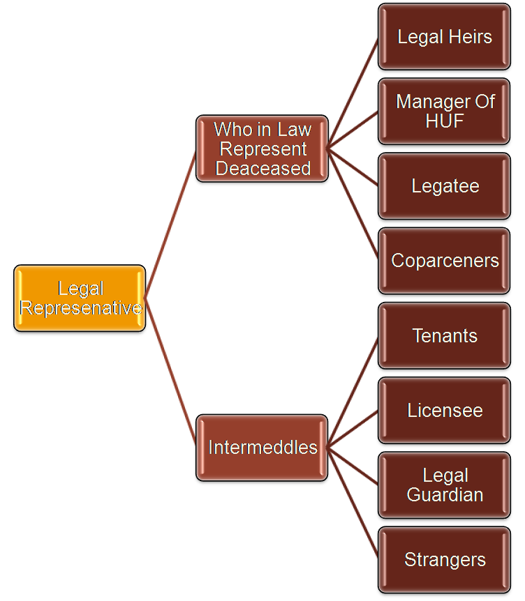 The definition of Legal Representative is a wide and inclusive one and conceives of two distinct categories. Firstly, the heirs or persons, who in law represent the estate of the deceased person. However, at par with them and in a class by itself is any person who intermeddles with the estate of the deceased. Such a person is equally a legal representative.