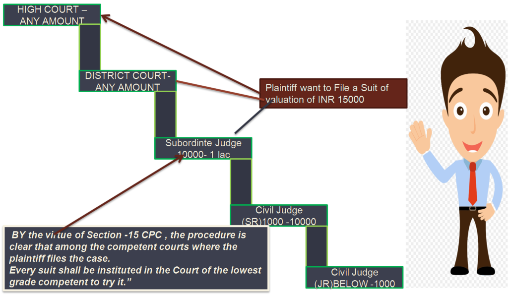 Section 15 lays down the rule stating that the petitioner/plaintiff has to file a case in the lowest court of competent jurisdiction.