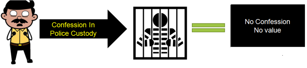 - Section 26, Confession by accused while in custody of police not to be proved against him: No confession made by any person whilst he is in the custody of a police officer, unless it be made in the immediate presence of a Magistrate, shall be proved as against such person.