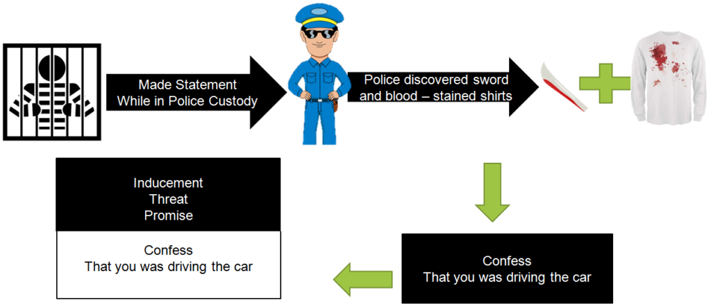 - Example: ‘A’ was arrested by the police officer on a charge of murder. ‘A’ confessed to the police officer that he had committed murder with a dagger what he had hidden in the neighboring field. On the basis of such information the police officer recovered the sword from the field. The statement regarding hiding of dagger to the police officer is relevant.